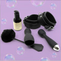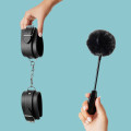 Med Puff & Cuffs kommer ni kunna utmana varandra att släppa på kontrollen, låt din partner låsa fast dina händer samtidigt som hen smeker dig över din kropp med hjälp av Puff Spanker - kanske varvat med lätt smisk? Sedan är det bara för er att byta plats. Puff Spanker har utvecklats för att du enkelt ska kunna variera mellan smisk och smekningar, vi rekommenderar verkligen att prova på detta. Puff Spanker och Cuffs är gjorda i fejkläder (alltså är de helt veganska).