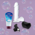 Blush Diamond Glimmer Clear är dildon för dig som vill se - och känna - allt. Den klara, glittrande kroppen låter dig följa varje rörelse, varje centimeter, samtidigt som den fylliga, realistiska formen ger en skönt omfamnande känsla. Ingen väntan på laddning, inga batterier, bara ren, pålitlig njutning som lyder minsta lilla rörelse från din kropp.
